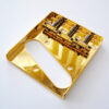 Gitarrenbrücke Typ TC Ashtray, mit rundum hochgebogener Stahl-Bodenplatte und 3 Doppelreitern.
