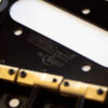 Massive Gitarrenbrücke mit Messing-Intonationssaitenreitern.